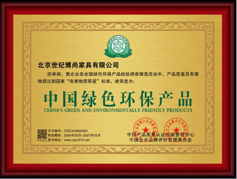 为了确保高质量产品投放市场,公司一直按国际 ISO9001 质量要求生产,严格要求自己,先后被评为“家具明星企业”“中国著名品牌”等多项殊荣,并连续几年创全国百家家具企业共创绿色品牌。